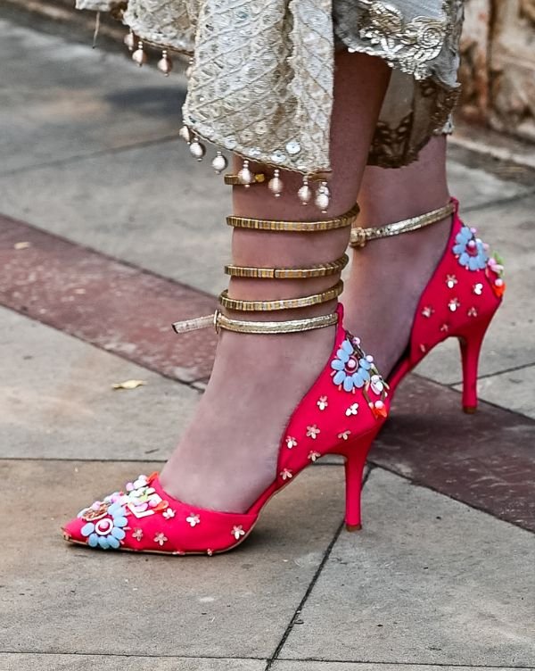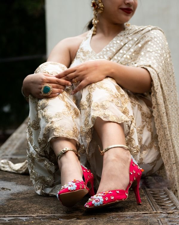 With a pointed toe design and a comfortable 3.5-inch heel, they provide the perfect balance of sophistication and support for your big day. Whether it’s the pheras, reception, or a festive gathering, these heels complement lehengas, sarees, and contemporary bridal looks beautifully.