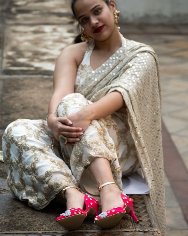 Step into the spotlight with our Gulabi Pink Bridal Heels, crafted for the bride who celebrates heritage with a touch of glamour. Featuring exquisite hand embroidery in resham, zari, and delicate stone embellishments, these heels are a visual ode to timeless Indian artistry.